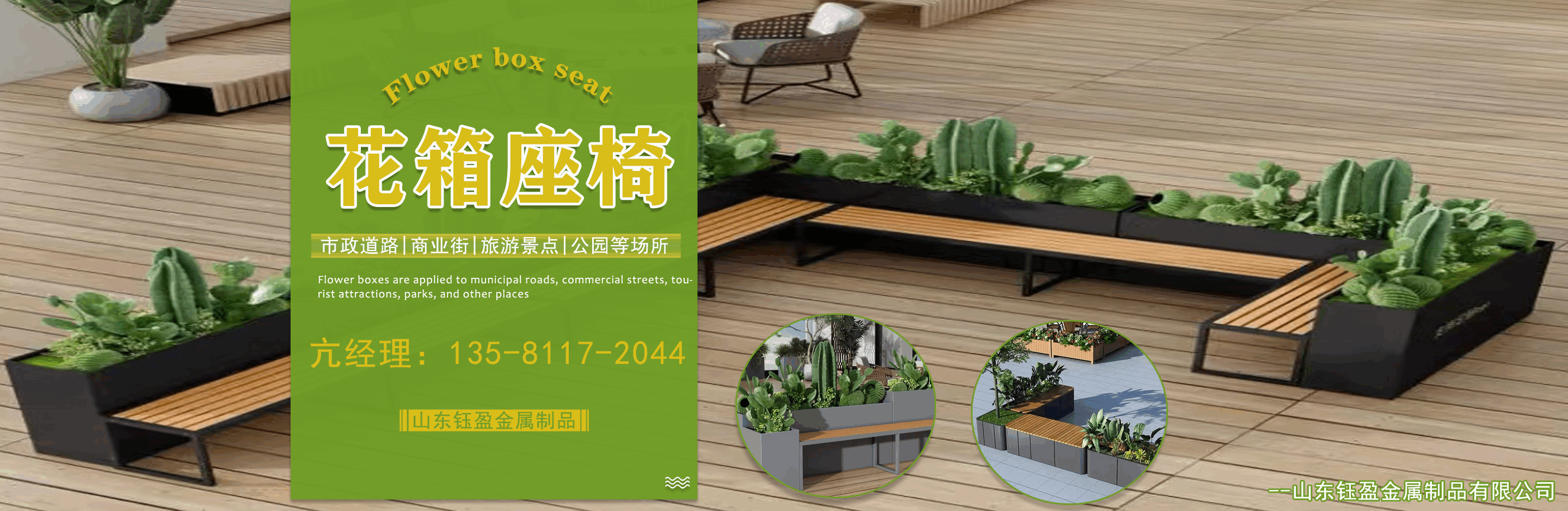 山東鈺盈金屬制品有限公司主營鍍鋅板花箱,道路隔斷花箱,定制花箱,戶外道路花箱,花箱座椅等產品,產品結構合理、性能優良,具有強度高、耐腐蝕、抗老化、隔熱隔音、節約能源、外形美觀、使用壽命長等優點,深受國內外客戶認可。  我們根據客戶所在城市的文化特征,制造出符合當地城市文化氣息的自然立體、觀賞性強的花箱產品成為城市里一道靚麗的風景線。  公司實行誠實、公正、守信、價格合理、平等互利。  公司憑借雄厚經驗實力,恪守誠信為本的原則,得到了眾多客戶的信賴,并在業界獲得良好的口碑。建立了穩固的合作關系,隨著業務的不斷發展和壯大,合作伙伴的范圍也在不斷擴大。我們熱情盼望與您的合作,為社會的可持續發展獻上一份努力。...